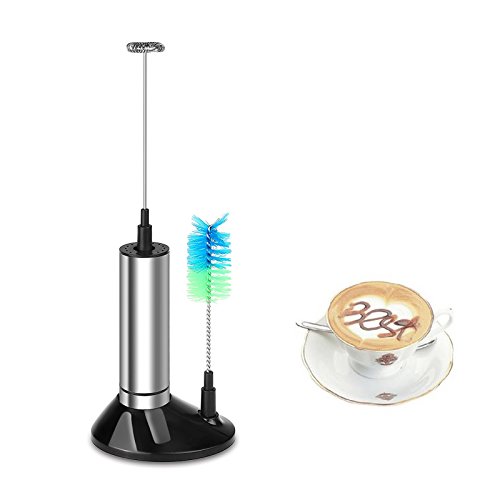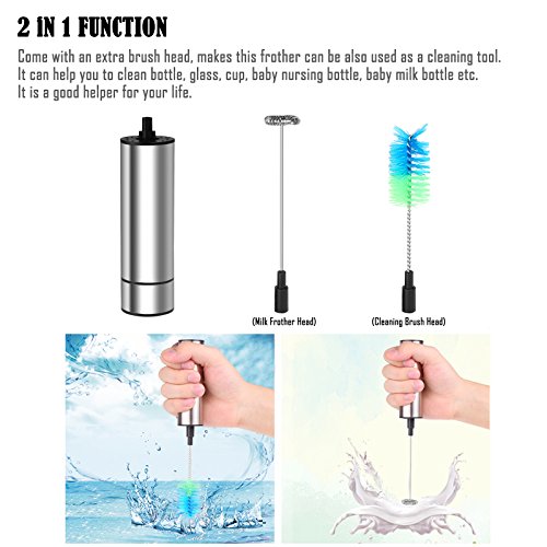 ONEVER Handheld Electric Stainless Steel Milk Frother with Brush Head for Foamer Blender Espresso Cappucino Latte Maker Whisk Eggs