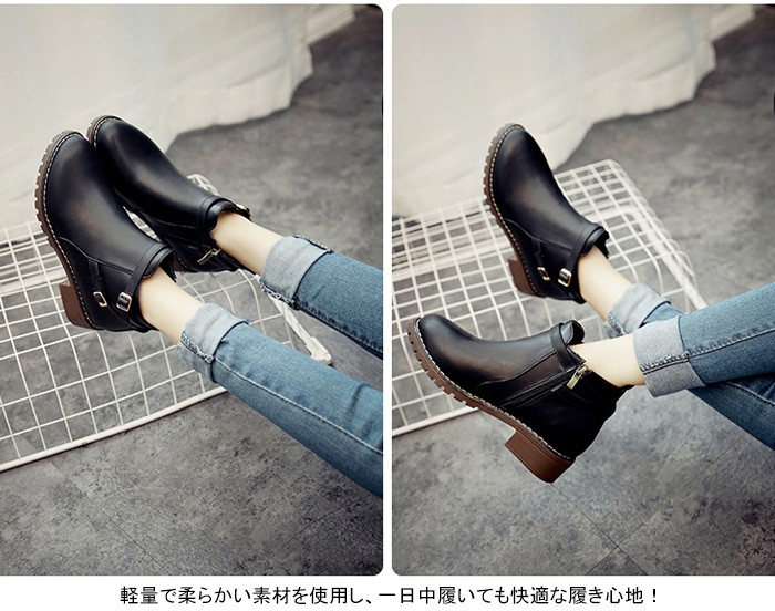 | 商品名 | 裏起毛PUブーツ ショートブーツ レザーブーツ 裏起毛 秋冬ブーツ ラウンドトゥブーティ レディース サイドファスナー ローヒール ブーティー 太ヒール 美脚ブーツ 歩きやすい 2017秋新作 |