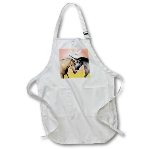 3dRose apr_53813_4 Lovely Unicorns in Love, with a Dove Full Length Apron with Pockets, 22 by 30-Inch, Black