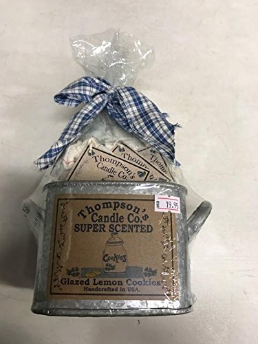 Thompson's Candle Co Glazed Lemon Cookies Galvanized Tin Tote with 3 Super Scented Sachets