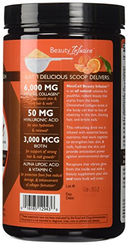 -. Feature : NeoCell Beauty Infusion is an all natural solution for youthful, radiant beauty that starts from the inside / Strengthen hair, skin and nails, hydrate the skin, and provide antioxidant power against environmental damage. / Recapture that vibrant glow from the inside out with a beauty supplement your skin and taste buds will crave