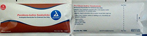 -. Feature : Povidone Iodine Swabstick / Swabstick is saturated with a 10% povidone iodine solution. / Ideal for venipuncture, IV starts, renal dialysis and pre-op prepping. / Total of 75 swabsticks (25 packs of 3) / Saturated with 10% Povidone Iodine Solution