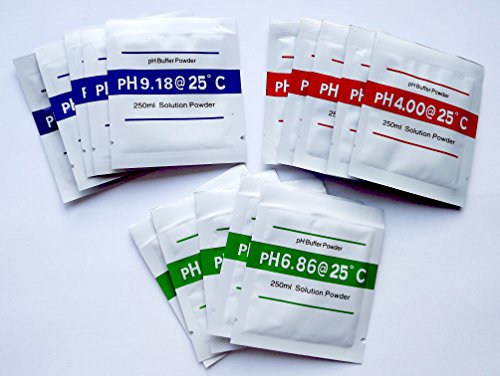 -. Feature : FULL RANGE. You get 5 sets. Each set includes one package of 4.00, one of 6.86 and one of 9.18 calibration solution for all pH needs / FAST and EASY. No need to measure, just mix individual packs with distilled water. / ACCURACY. Calibration powders enable you to test the pH of your pool, aquarium, water, and more quickly with your pH tester / meter / LONG -TERM USE. Save time and money by mixing powders in a jar of distilled water. This lets you keep them longer and more readily available without needing more packets!