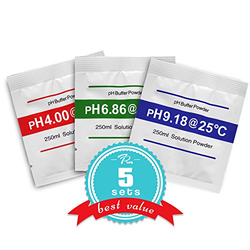 -. Title : pH Buffer Solution Powder Set, for Precise pH Meter Calibration, 5-Pack Calibration Solution 15 packets, Make 250 ml of Each 4.00pH, 6.86pH, and 9.18pH to calibrate your PH tester
