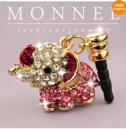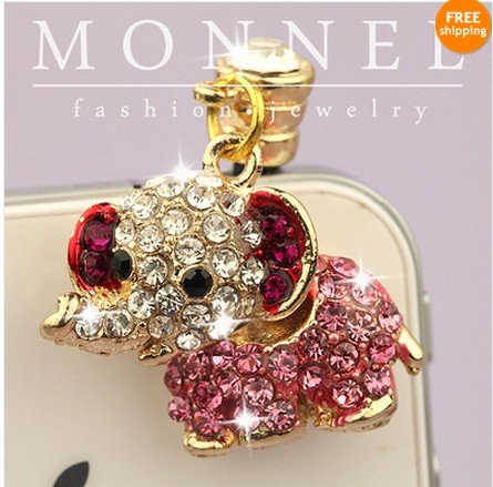 ip164 Cute Pink Crystal Elephant Iphone 4 4s 3gs Android 3.5mm Ear Cap Anti Dust Plug Charm