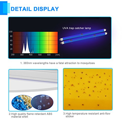 100% Satisfaction Guarantee: If you feel that this mosquito killer lamp didn’t live up to your expectations, let us know and we will assure your purchase comes with our no-risk, no-questions asked Money-Back Guarantee, and Top-Rated Customer Service refund on the product price