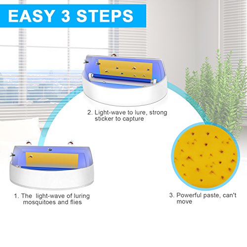 Easy to Use: Convenient catch tray for ease of disposing of bugs and cleaning. Just replace the sticker when it is full of mosquitoes