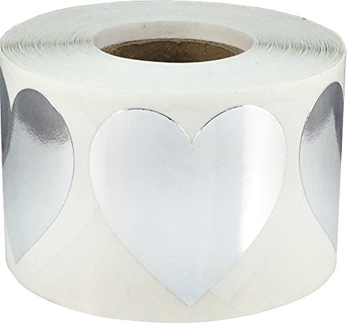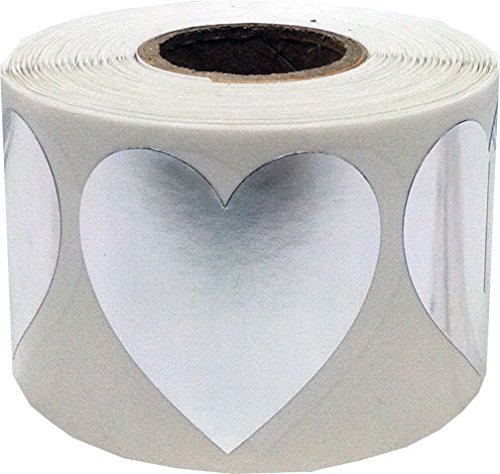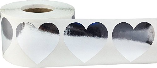 InStockLabels Heart Stickers 1 1/2 Inch 500 Adhesive Stickers, Metallic Silver
