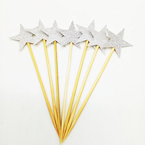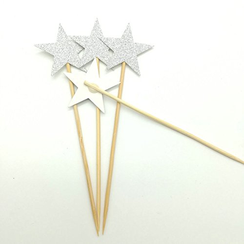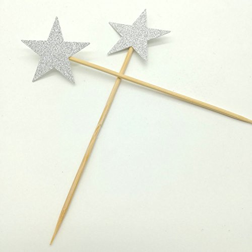 Paity Silver Glitter Star Cupcake Toppers Silver Wedding Cupcake Topper Silver Star Cake Topper Silver Birthday Party Pick Dessert Topper 24pcs