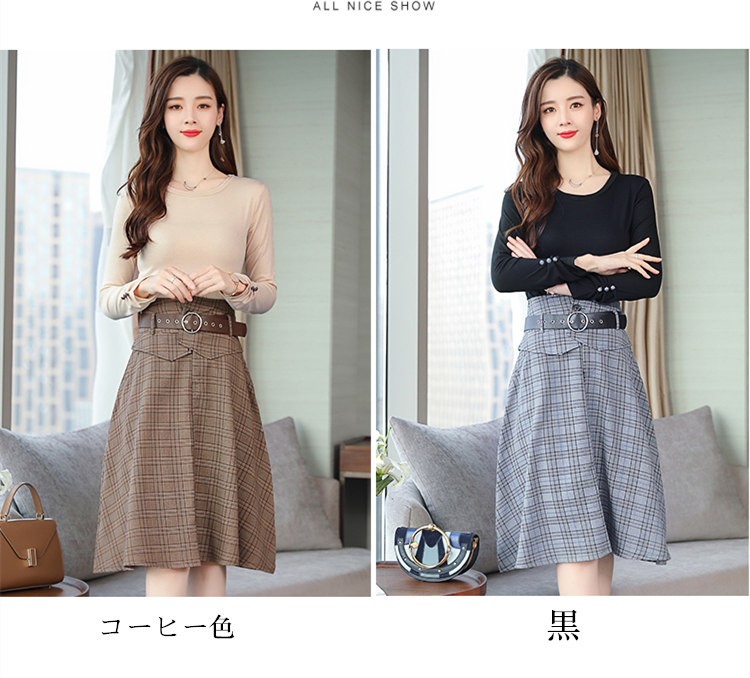 セットアップ レディース 上下セット セットアップ スカート セットアップ ワンピース トップス 長袖 ミディアムスカート チェック柄 ベルト付き お洒落 着痩せ 通勤 OL 二次会 食事会 入学式 30代40代 秋物★素材:ポリエステル ★生地の厚さ:普通 ★セット内容:トップス+スカート ★生産国:中国 ★カラー:黒/コーヒー色 (写真参考)★サイズ(cm)M:着丈57 袖丈60 ウエスト70 スカート丈66 肩幅38 L:着丈58 袖丈61 ウエスト74 スカート丈67 肩幅39 XL:着丈59 袖丈62 ウエスト78 スカート丈68 肩幅40 2XL:着丈60 袖丈62 ウエスト82 スカート丈69 肩幅41※サイズは人の手によって測っているため、1-3cmの誤差がある場合がございます。予めご了承下さいませ。