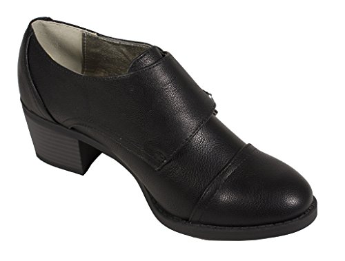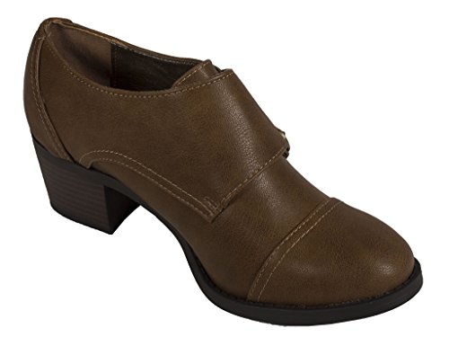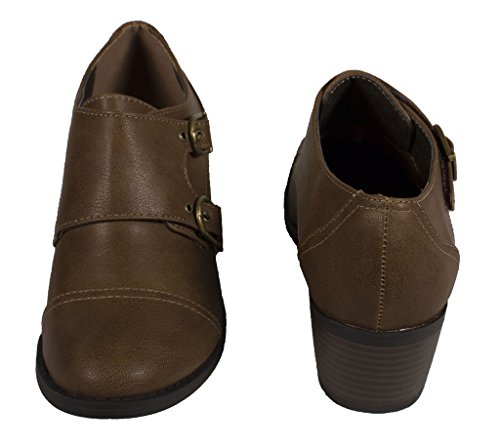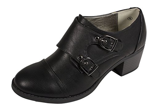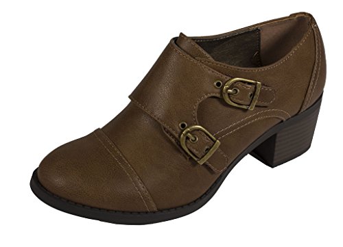 Lustacious Women's Almond Toe Side Buckle Stacked Heel Ankle Loafers