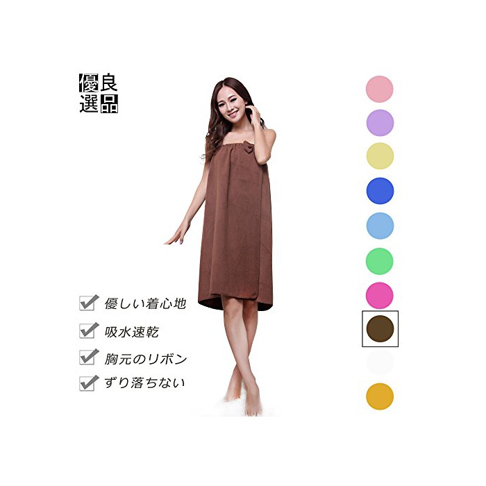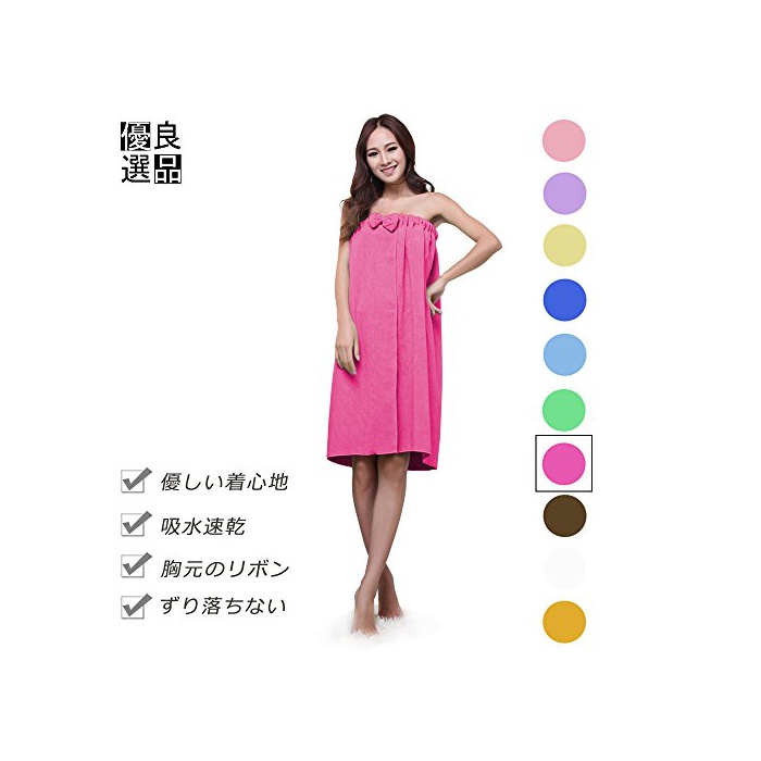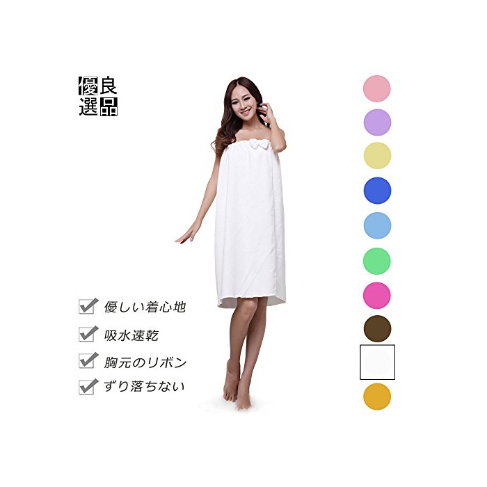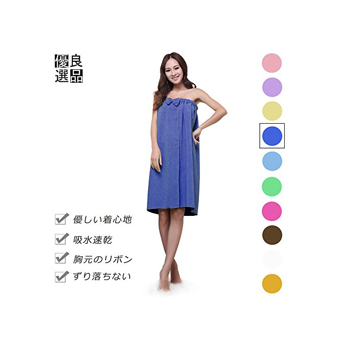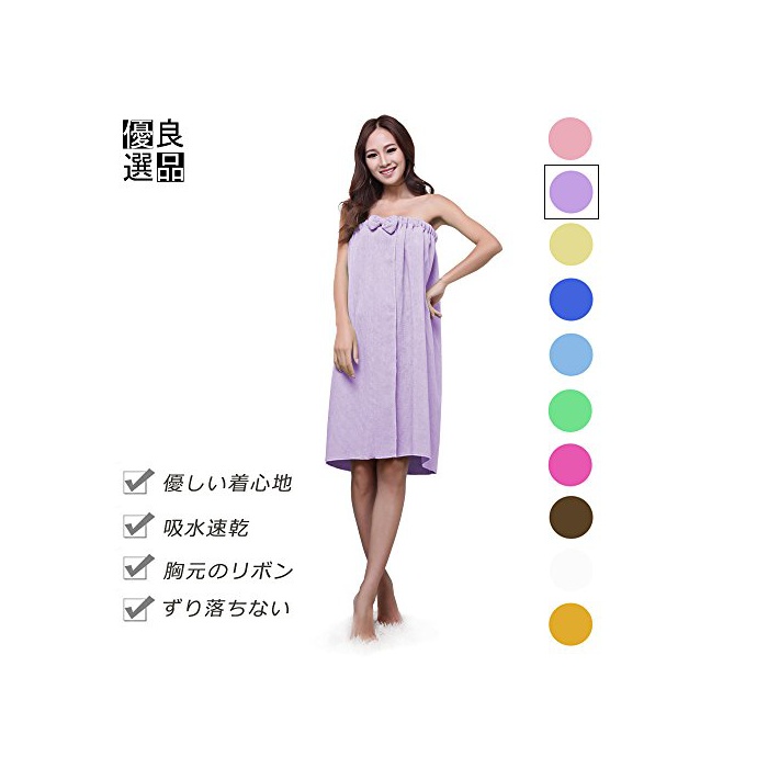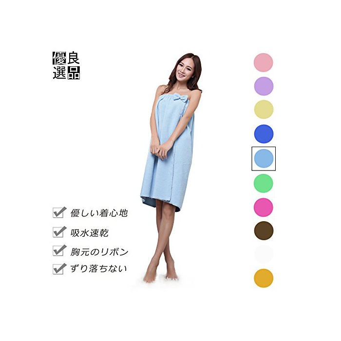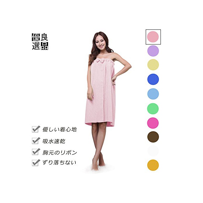 원본상품명: 良品優選 レディ?ス バスロ?ブ 着るバスタオル リボン付 肌?りがよい バスワンピ?ス 吸水速乾 ル?ムウエア パジャマ 部屋着 など フィットネス スポ?ツにも 全10色