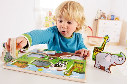 -. Feature : The world is full of amazing creatures, Hape is here to help you share that with your child / Animal puzzle pieces are thick enough can be used as play figures / Develops fine motor skills, cognition, visual sense, and storytime / Recommended for ages 2 years and up / Non-toxic finishes and child safe materials