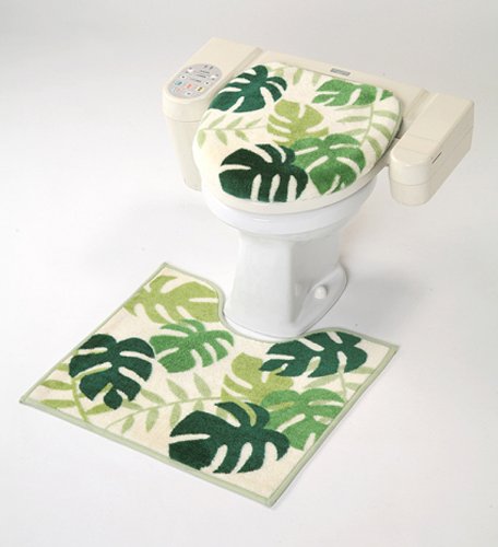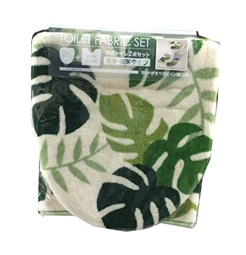 -. Title : Monstera Western Toilet 2-piece set (foot mat and cleaning cover cover) Green (japan import)