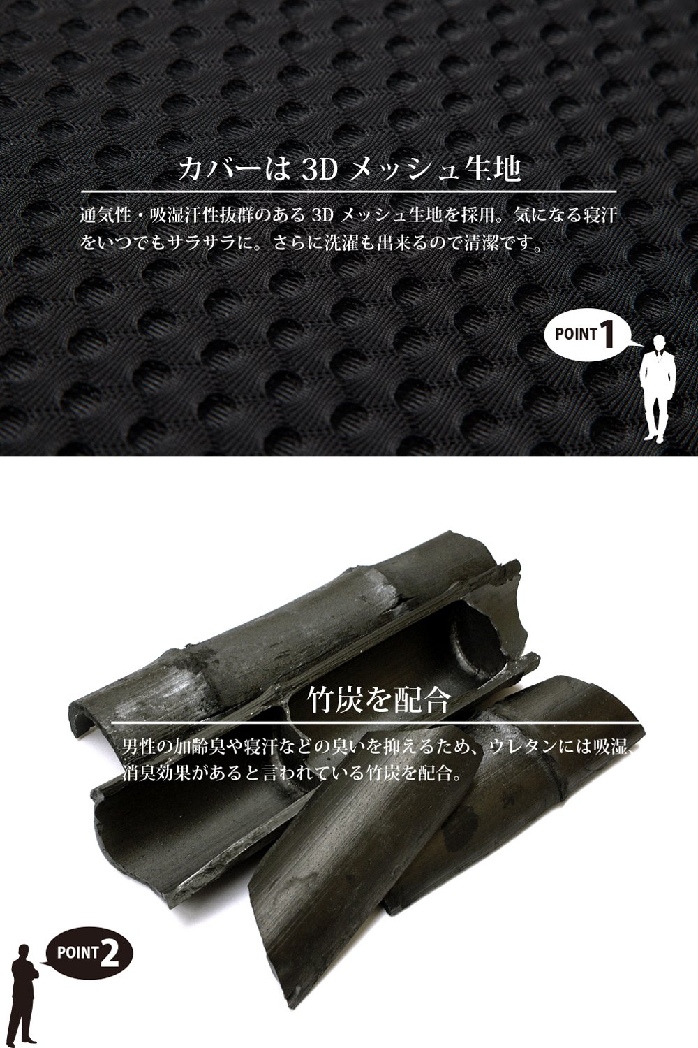 ● POINT 4: [Blending bamboo charcoal] In order to suppress odors such as aged odor and night sweats of men, bamboo charcoal which is said to have moisture absorption and deodorizing effect is mixed in middle urethane.