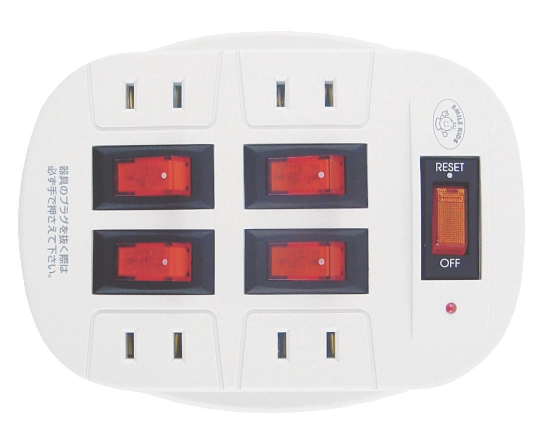 "Smile Kids Lightning Guarded 4-Port Power Conservation Outlet ASW-014" is a 4-port outlet (tap) with a cordless type lightning guard that plugs directly into the wall.