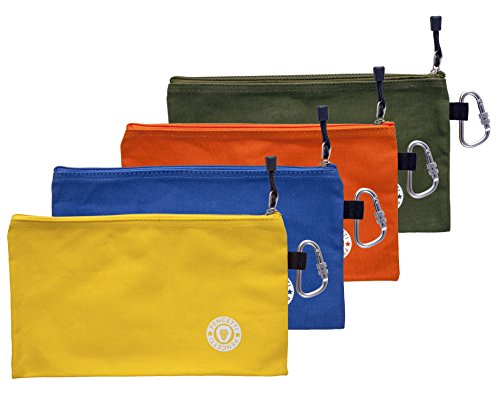 - UNBEATABLE VALUE - Includes 4 color-coded tool pouches (yellow, orange, olive & blue) for easy identification, plus 4 carabiners. Each bag measures (approx.) 12.5" L x 7.25" W x 0.25" H and weighs 2.56 oz.
