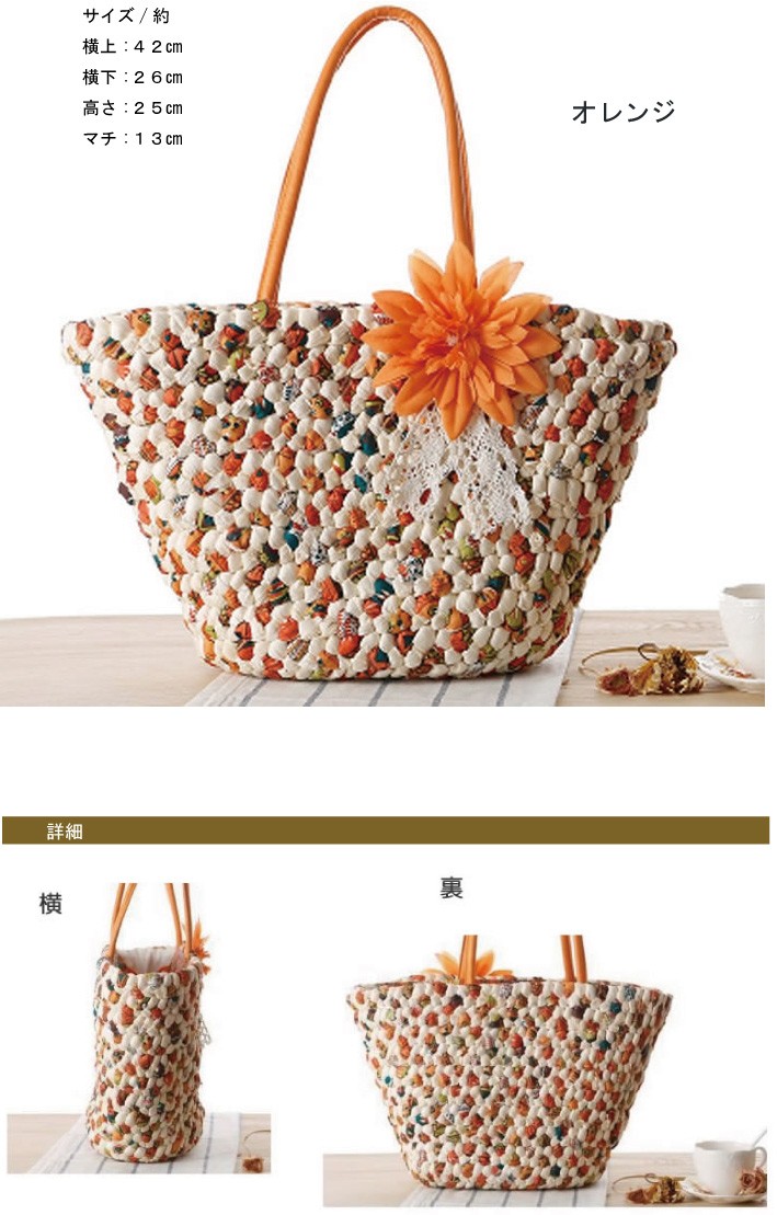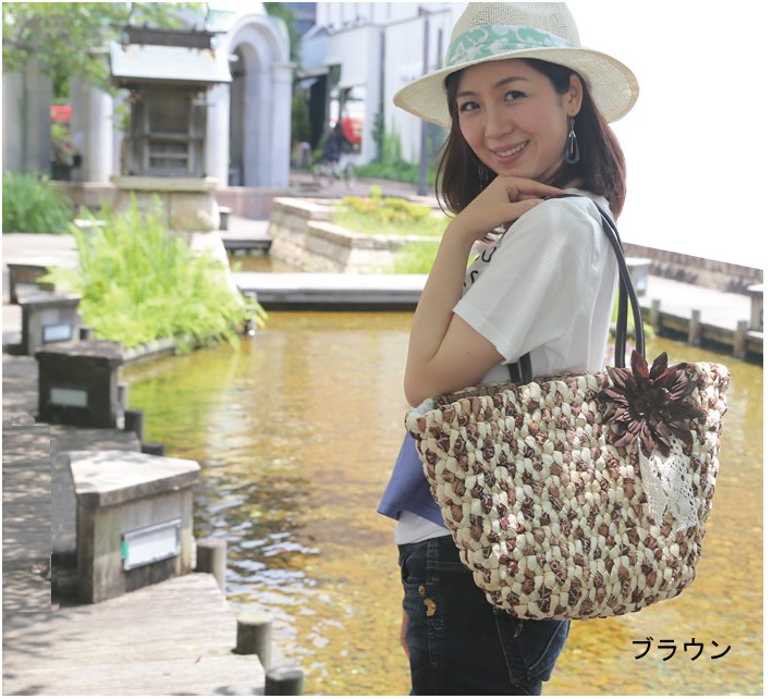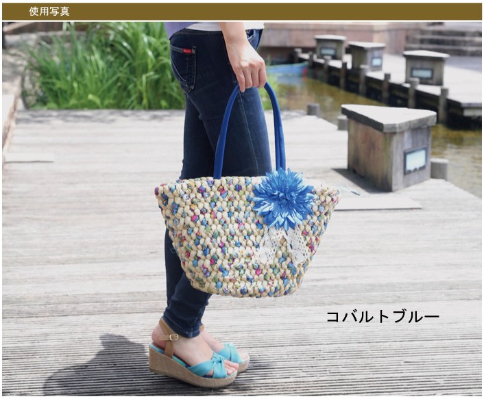 ★春夏のシーズンアイテムとして、ひとつは持っておきたいカゴバッグ。 鮮やかなフラワー使いがキュート。 ★フラワーの色、取っ手と同色系の布の色使いが調和して、 全体の統一感がベストマッチのかごバッグ♪ ★間口の広い大きいサイズは、デイリー使いにはもちろん海やプールなど夏のリゾートシーンにも大活躍。 ★トウモロコシの皮とカワイイ布で編み込まれた丈夫なかごバッグ。 しっかりと編まれているので安心して使えます。 柔らかなさわり心地と暖かみのある手造り感は、大人可愛く持っていただけるアイテムです。 ★内布付で丈夫なのも嬉しいポイント。チャック付きでので中身が見える心配もありません。 これからの季節はピクニックや公園でのランチにも。 返品・交換不可(発送前にしっかり検品しています。ご了承の上、お買い求め下さい。) |