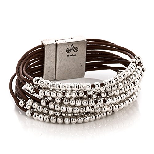 Genuine leather bracelet with sterling silver plated magnetic clasp and tiny beads. Made in Spain, chocolate brown leather, fits wrists 7.5 inches. Brand : Trades by Haim Shahar Item model num : MB616BR MPN(PartNumber) : MB616BR Product Dimensions(LxWxH) : 20x3x0cm ; 45 g Package Dimensions(LxWxH) : 20x3x1cm ; 45 g
