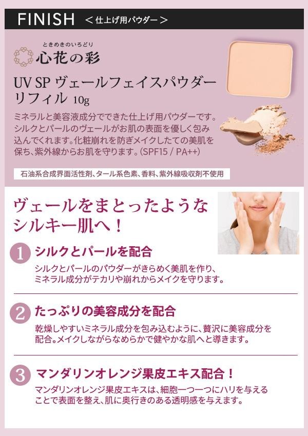 ミネラルと美容液成分でできた仕上げ用パウダーです。シルクとパールのヴェールがお肌の表面を優しく包み込んでくれます。化粧崩れを防ぎメイクしたての美肌を保ち、紫外線からお肌を守ります。(SPF15・PA++) |