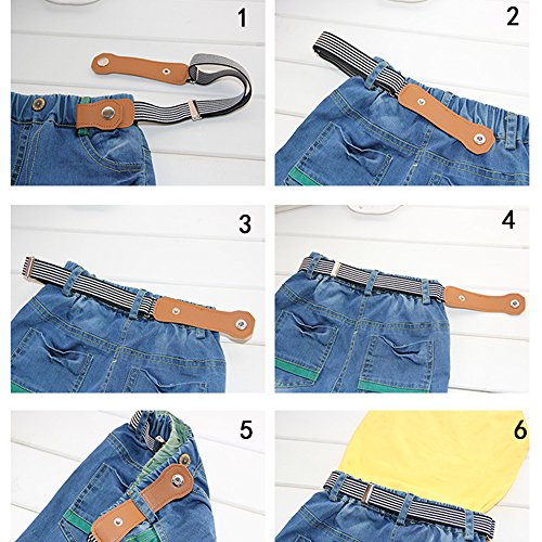 Put the belt on the waistband pants, adjustable size for the belt to make it right for your baby, do not worry the pants size is a little big for kids
