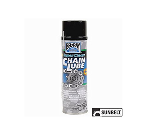 Studio : AI Publisher : AI Product Description Bel Ray Super Clean Chain Lube (13.5 oz). PART NO: B1AC118. Bel-Ray Super Clean Chain Lube is a unique premium product designed exclusively for motorcycle and ATV 'O' ring chains. It sprays on evenly and provides complete coverage of the chain, creating a waterproof barrier that prevents rust and corrosion. Bel-Ray Super Clean Chain Lube will not fling off and repels dirt and sand. Size13.5 oz CAN. MODELS: (Miscellaneous) (Undefined): SEVERAL (Miscellaneous) (Undefined): SEVERAL 0