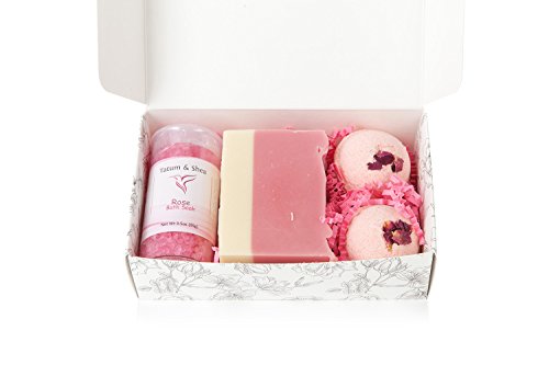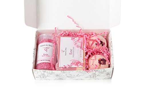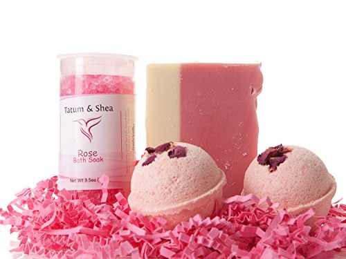 - Mineral-Rich Dead Sea Salt: Enjoy a long, luxurious soak in a therapeutic bath thanks to the Dead Sea salt in your Tatum & Shea Bath Set. Infused with a light rose scent for added relaxation.