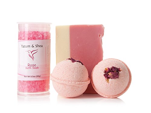 - Ring-Free, Lightly Moisturizing Bath Bombs: Unlike some lesser quality spa sets, Tatum & Shea bath bombs leave skin soft but never greasy. Plus, the color won't leave a telltale bathtub ring.