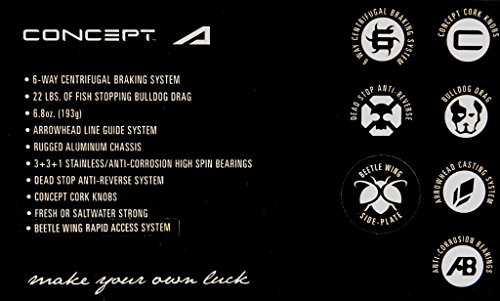 -. Feature : 6-Way Centrifugal Braking System / Arrowhead Line Guide System / Red Aluminum Chassis - Concept Cork Knobs / 3+3+1 Stainless/Anti-Corrosion High Spin Bearings / Includes a pair of Adjustable 13 Fishing Hats