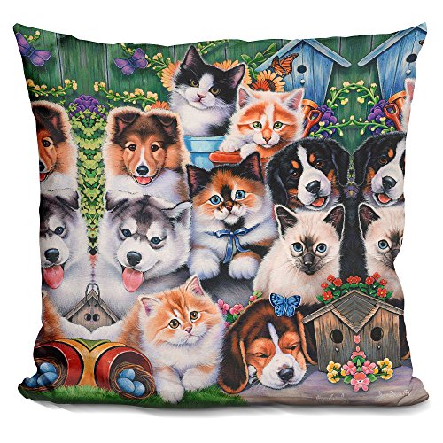 LiLiPi Kittens & Puppies in the Garden Decorative Accent Throw Pillow