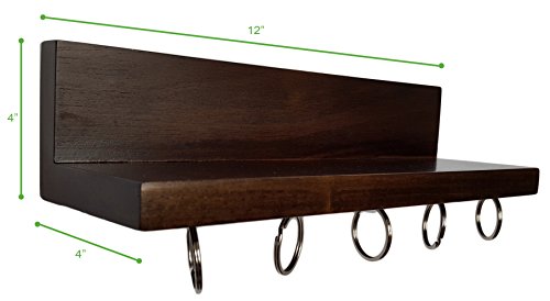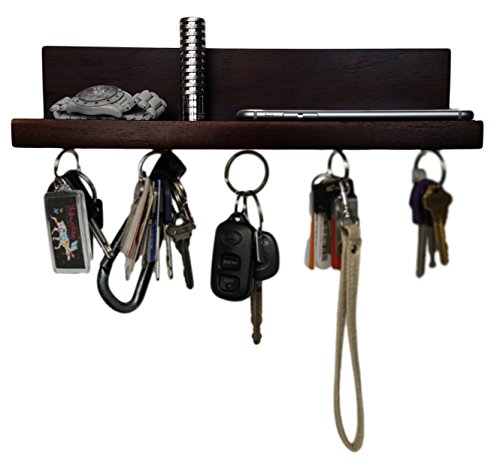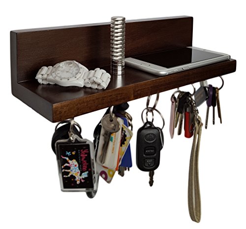 Brooklyn Basix Premium Magnetic Wood Key Ring Holder and Shelf for Mail, Letter, Phone, Wallet, Sunglasses Wall Mounted Organizer Perfect for Mudroom, Entryway, Foyer, Kitchen (Walnut)