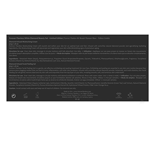 TWO-STEP SKIN CARE TREATMENT - The Forever Flawless Limited Edition White Diamond Beauty Set is a complete two-step facial kit to accommodate your basic skin care needs. The kit includes two products: the best-selling Forever Flawless Peeling Gel and the new Forever Flawless Moisturizing Cream. Both are infused with 100% natural, extra-fine diamond powder. Try them today!