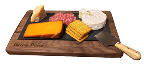 MULTI-PURPOSE board can be used as a serving tray for appetizers, a cheese board, charcuterie board, or bread board. Remove the slate and flip the walnut wood over to use as a cutting board