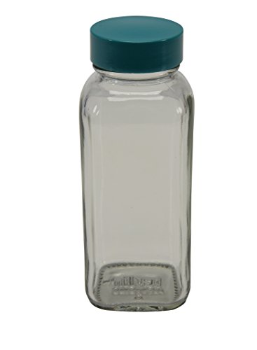 Vestil BTL-SW-G-4-CS Wide-Mouth Square Glass Bottle with Green Cap, 4 oz Capacity, Clear (Pack of 6)