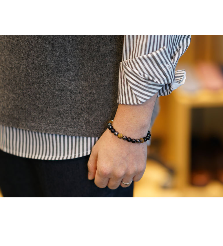 젠틀한 느낌의 블랙톤 오닉스 원석팔찌입니다. 남녀 모두에게 팔찌소재로 인기가 많은 오닉스에 세련된 느낌의 해마타이트와 매트컬러 호안석이 포인트로 적절하게 섞여 단품 착용으로도 정말 멋스러운 팔찌로 제작되었습니다. 단품으로도 좋지만 시계나 다른 팔찌와 레이어드 해도 잘 어울립니다. 남자팔찌, 여자팔찌 모두 착용하기 좋은 디자인으로 커플팔찌로 착용하기 좋도록 남성용, 여성용, 주문제작 사이즈로 제작됩니다. 주문제작은 요청하시는 사이즈에 맞춰 팔찌 사이즈를 맞춰드리며 추가비용은 없습니다.