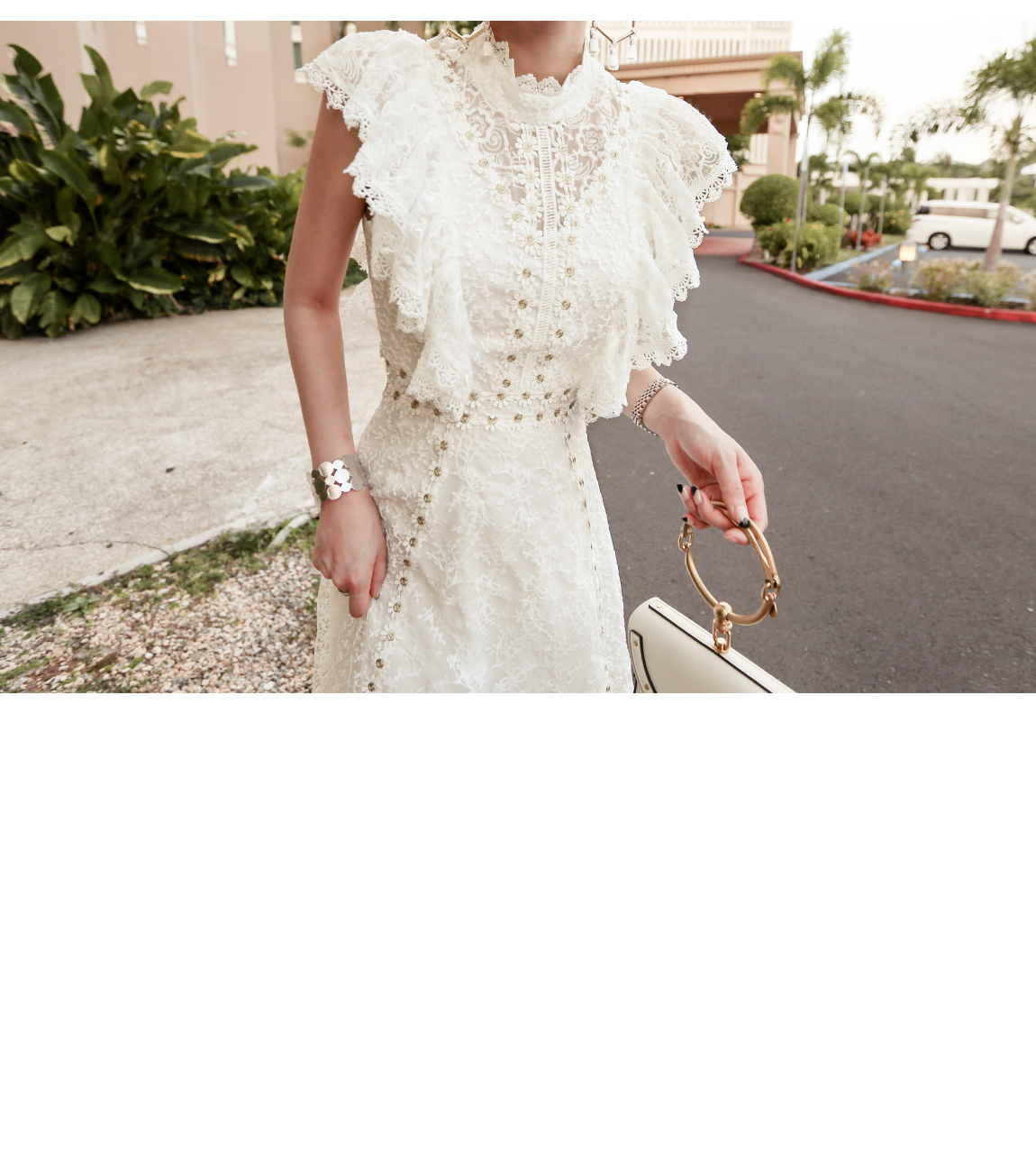 全体的なフローラルディテールとドレッシーなラインガムに