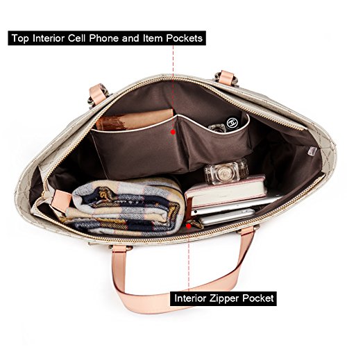 ★Superior PVC fabric:waterproof, wear resistant and wrinkleresistant,not easy to get dirty,durable and sturdy. ★Polyester cotton lining: fadeless and feeling comfortable,niceworkmanship,can use it for a long time. ★Ultra-light weight: only 1.82 pounds. ? Superb onStorage ★Ample room for 15-inch laptops, iPad, cosmetic, tissue, A4 sizefile, books, cellphone, keychain and more. It is suited to office, museum,mall, party and trip. ? UniqueDesign and Exquisite Detailing ★Closure Type: Top metal zipper buckle closure for extra security.Gorgeous look and highlights your feminine elegance. ★ReinforcedShoulder Strap: When the bag is filled with heavy stuffs, the strap will bewide enough to make you comfortable. ★Durable Hardware: Golden metal hardware which is very gorgeous anddurable.There are 4 golden protective metal feet at thebottom, prevent damage to bags. ? Maintenance Tips ★When stained with dirt, please dip it in soapy water with a softsponge brush and gently wipe, and dry it in the shade. ★When not use for a long term, tightly wrapped it into the bag andplaced in the desiccant. 0 |