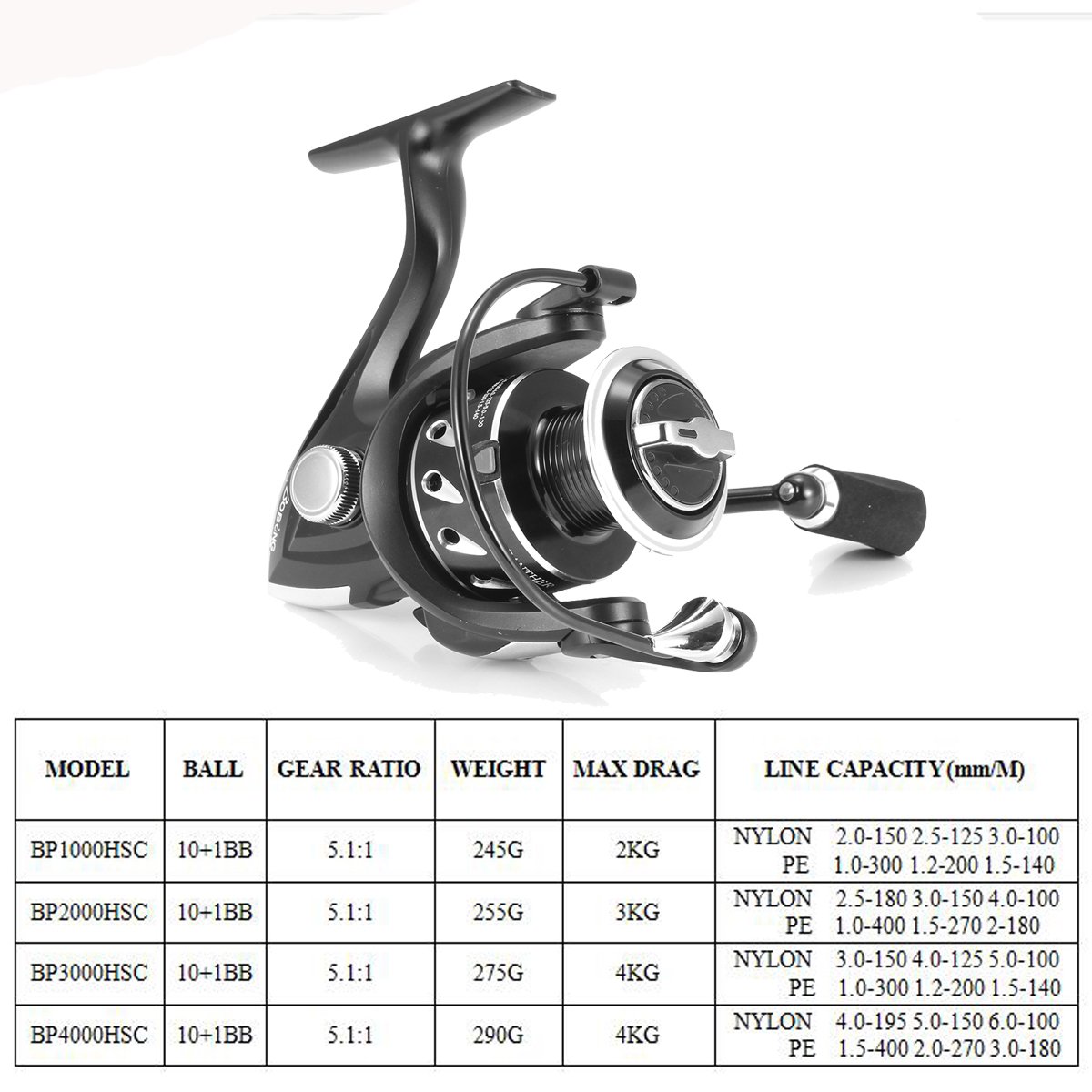 - 10 + 1 ball bearing, preloaded spinning fishing reel