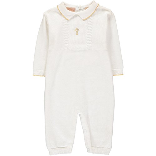Beautiful Christening/Baptism outfit. 100% Cotton white with Gold trim and Gold cross on front. Comes with beautiful matching hat. Machine Washable so you can keep as an heirloom and cherish it for years.