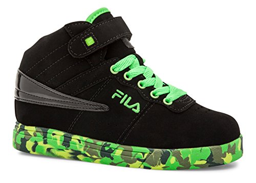 Fila Kids' Vulc 13 Mashup Sneaker, Black/White/Metallic Silver, 5 M US Big Kid