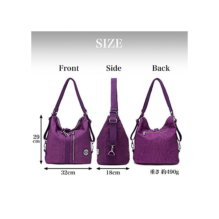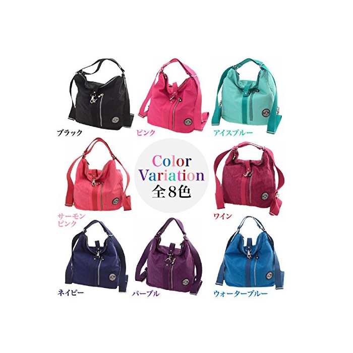 【크기 중량】(외치수)옆(다게 되다)폭약32cmx높이(세로)약29cmx마치(깊이,폭)폭 약18cm 약480g 【주요 소재】나일론 【컬러】네이비,블랙,워터 블루,핑크,퍼플,와인,새먼(salmon) 핑크,아이스 블루 【사양】꺼내어 언약30cm,포켓:바깥쪽2곳(지퍼부)고, 안쪽3곳(하나 지퍼부)고, 숄더 장조절가