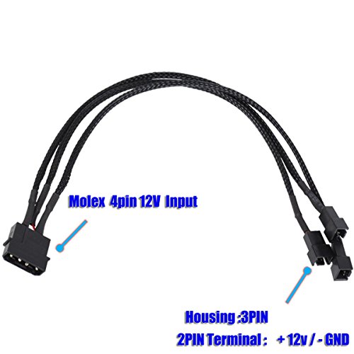 Color: Black Wire Gauge: 26AWG Tinned Copper - UL1007 Wire Cable Length: 20cm Connector A: 1 - 5.25" Molex 4 pin LP4 Male Connector B: 3-3pin housing Note: 1.Only the fan on 'CPU Fan' channel is used for monitoring. 2.All connected fans are following the same PWM signal speed control is the same for all fans when use fan controller software like AI stuite/Xspert FAN and EASY TUNE,etc 3.PWM capable connectors must necessarily be 4-pin, but not all 4-pin motherboard connectors implement or enable the PWM signal modulation by default. Please carefully consult your motherboard documentation in this respect. 4.This is only a fan splitter cable, NOT fan speed controller, Only 4pin PWM fans speed can be adjusted by fan controller software, 3pin fan would run in full speed,can not be adjusted when connect.