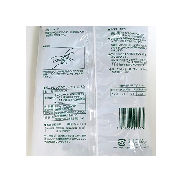 원본상품명: ガムシロップカロリゼロ お用 (7g×50個)10袋セット