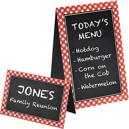 Delightful Picnic Party Red Plaid Chalkboard Tent Cards Decoration, Paper, 4" x 6", Pack of 24