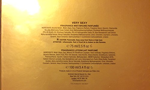 -. Feature : Very Sexy set includes:- Fragrance Mist 2.5 fl oz and Fragrance Lotion 3.4 fl oz