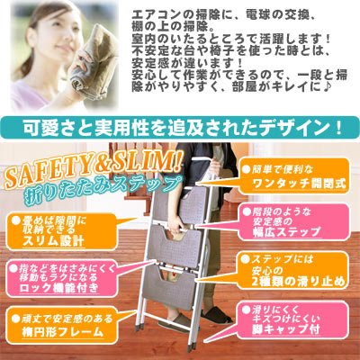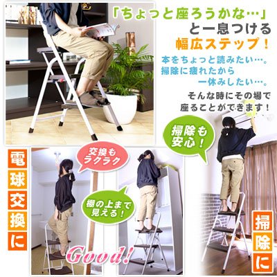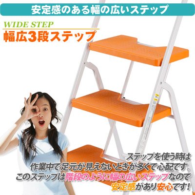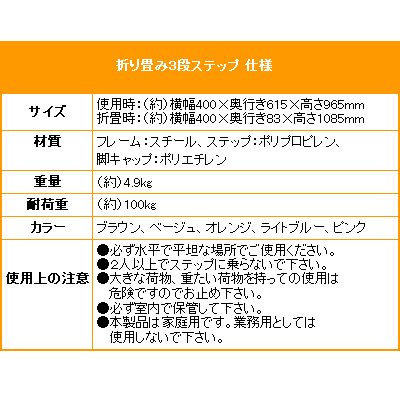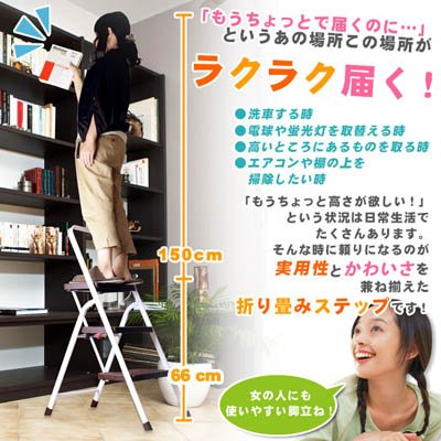 [Step stand stool stepladder] step height 66cm load-bearing about 100kg sturdy folding step three stages Brown (B125-S1)