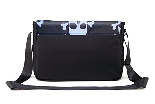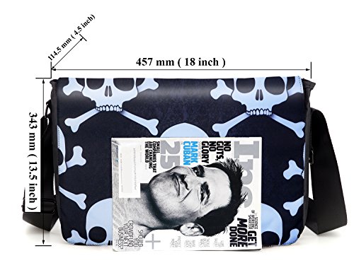 - Feature : Unique, cool sleek artwork design on premium quality polyester material / Main padded computer compartment with velcro flap & Padded document, textbook compartment / 2 zipper pockets: 7"H x 10.5"W and 5" x 10.5" with many accessories pockets and pen holders / Soft, wide adjustable shoulder strap / Overall dimension: Approx. 18"W x 13.5"H x 4.5" D