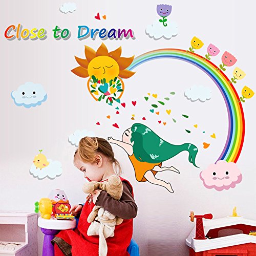 -. Title : Wallpark Sleeping Girl Cute Sun Colorful Flowers Rainbow Removable Wall Sticker Decal, Children Kids Baby Home Room Nursery DIY Decorative Adhesive Art Wall Mural