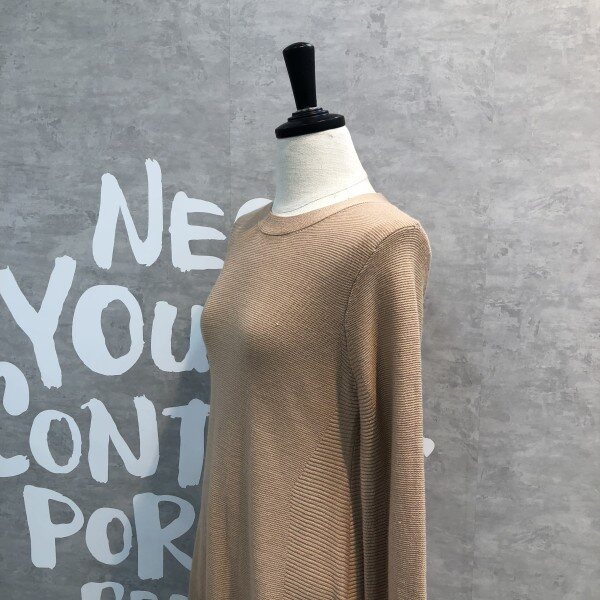 울 블렌드 소재의 립 조직감이 돋보이는 플레어 실루엣의 페미닌한 원피스입니다