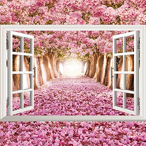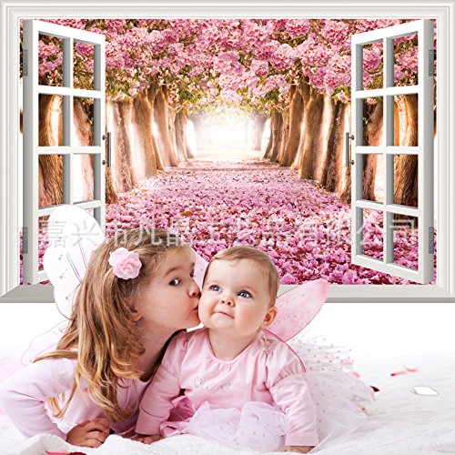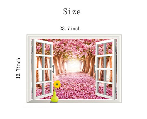 Window Wall Decals 3D Fake Faux Window Stickers Vinyl Peel & Stick Mural Art Wallpaper for Kids Children Baby Family Bedroom Living Room Nursery Room Landscape Frame Kindergarten Decor Removable
